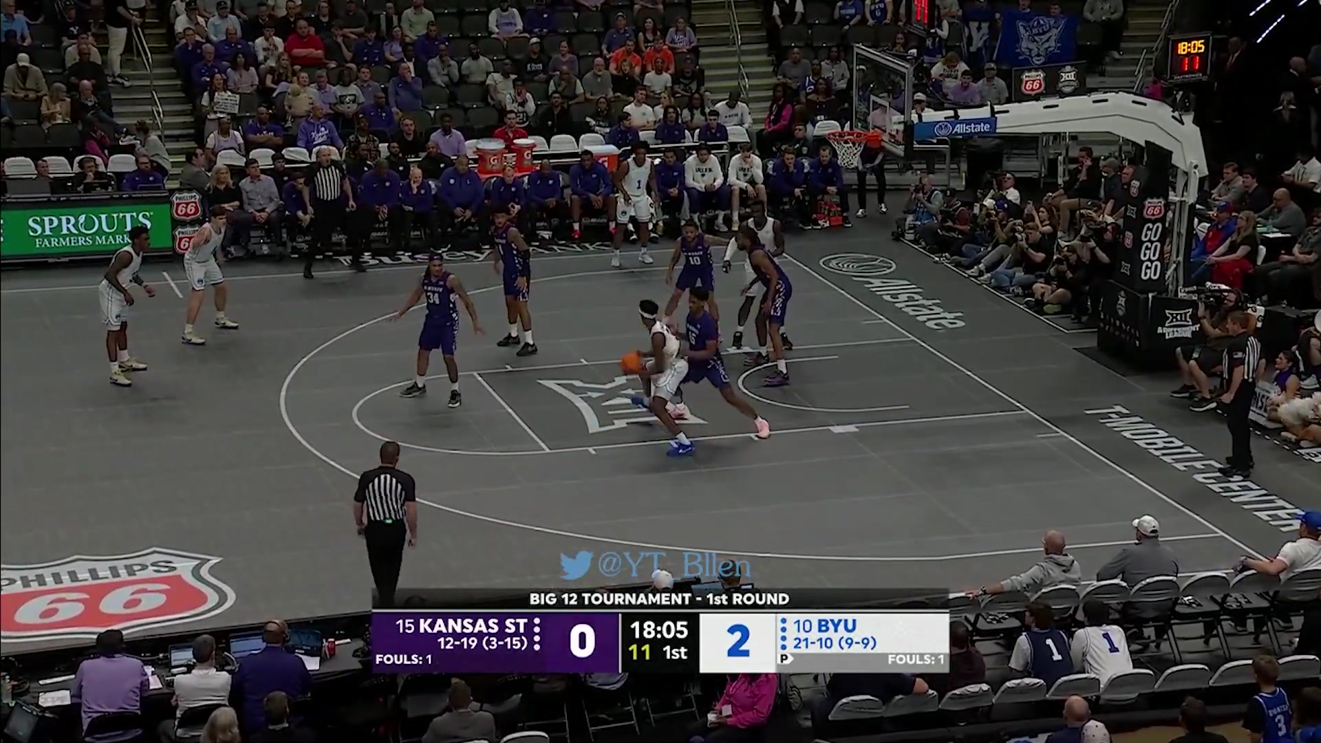 03月11日讯 2026年NCAA Big 12分区锦标赛首轮,杨百翰大学以105-91大胜淘汰堪萨斯州立大学。