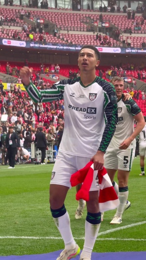 体育资讯05月25日讯 英冠升级附加赛决赛桑德兰2-1绝杀谢菲联,成功升入英超。赛后队内中场主力乔布-贝林厄姆朝看台指着桑德兰队徽。